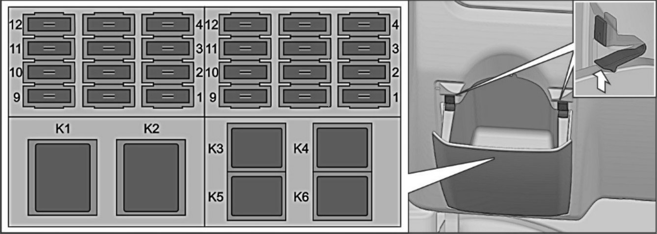 Питание системы защищено предохранителем в левом салонном блоке: